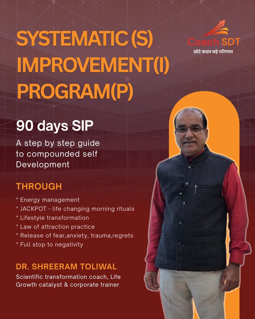 Coach SDT’s approach is practical, insightful, and life-changing. Dr. S. D. Toliwal’s ability to shape mindset, discipline, and inner balance makes him a true mentor for both personal and professional growth. — Dr . Keyur Brahmabhatt, HOD IT Dept. BVM Vallabh Vidyanagar